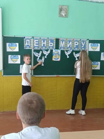 19 вересня класний керівник 8 класу Витичак І.І. провела з учнями виховну годину до Всесвітнього Дня Миру “Ми хочем миру!” для того, щоб дати історичну довідку дітям різних вікових категорій про Міжнародний День Миру, формувати активну життєву позицію учнів, виховувати розуміння того, що майбутнє світу залежить від справ і думок людини. Привернути увагу до проблеми миру на землі і безпосередньо України.