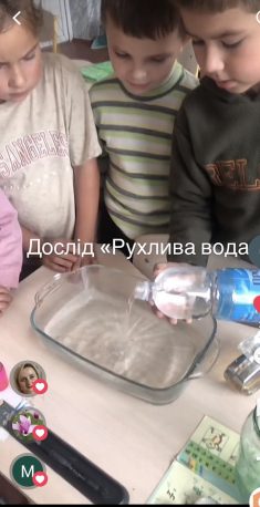 На уроках ЯДС вивчаючи тему «Зміни» учні сформували уявлення про властивості води, здатність змінювати агрегатний стан . При проведенні досліду «Рухлива вода» діти розвивали спостережливість, дослідницькі навички, вміння аналізувати, робити висновки, а також виховували дбайливе ставлення до води, як цінного природного ресурсу. Проводити такі досліди і робити такі експерименти дітям завжди подобається!