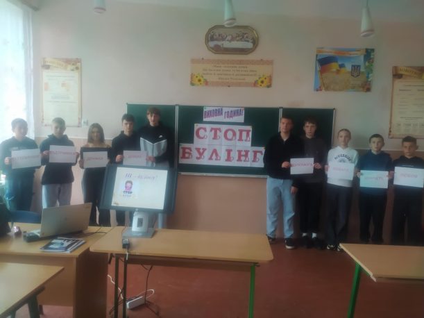 Булінг – важлива проблема для дітей в Україні. На сьогоднішній день надзвичайно гостро постає проблема агресивних проявів у міжособистісних стосунках учнівської молоді. Саме шкільний булінг можна вважати першим кроком до справжнього насильства та злочинної поведінки. Тому з метою попередження насильства в 9 класі Погірцівської гімназії була проведена виховна година “Стоп …