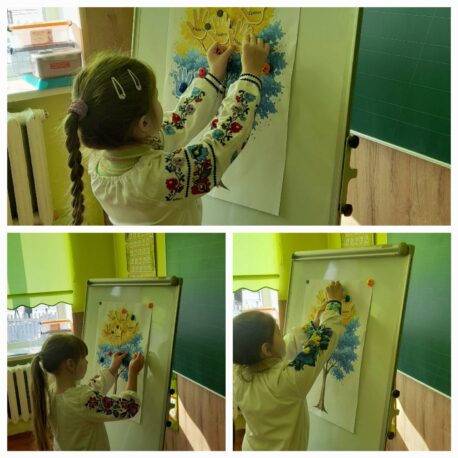 Зворушливим моментом стало створення “Дерева єднання”. Заздалегідь виготовлені долоньки ми розмістили на нашому символічному дереві, яке стало справжнім оберегом класу.